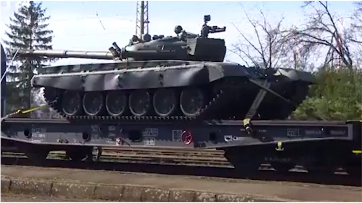 Tanque de guerra aguardado em trem para seguir para a Ucrânia (Reprodução)