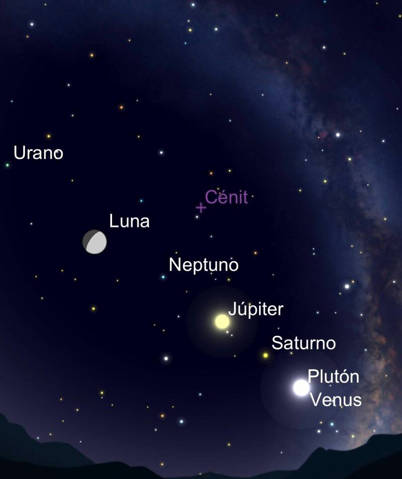 A última informação, conforme explicou a doutora em Astronomia do Observatório Astronômico Nacional da Universidade do Chile, Andrea Mejías, ao meio de comunicação chileno Biobío, ocorre porque Júpiter estará muito próximo do Sol, dificultando sua observação, ao contrário de Saturno e Marte que aparecerão sobre o horizonte muito antes do amanhecer, sendo as primeiras horas da manhã as melhores para aqueles que desejam testemunhar esse evento.