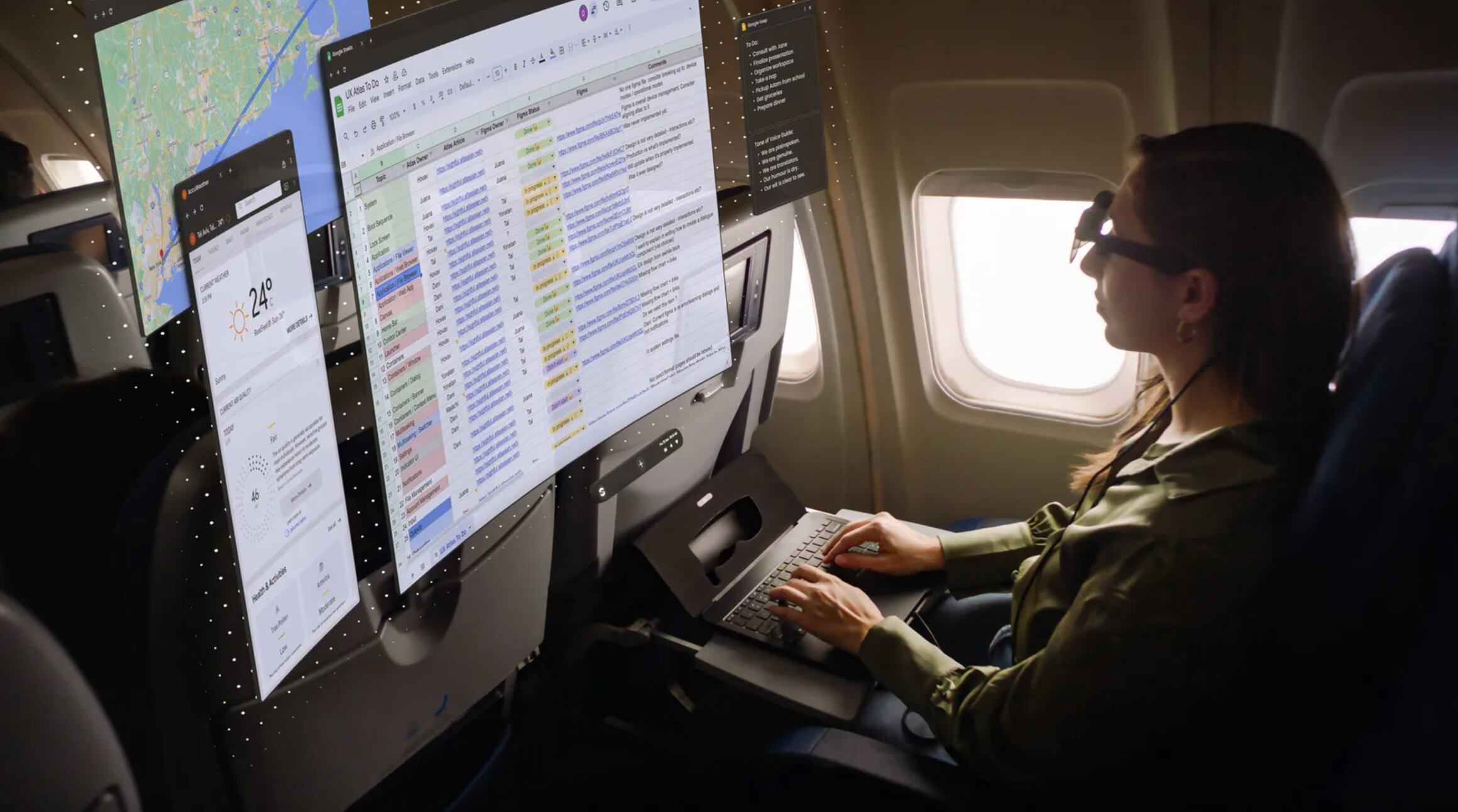 Além disso, a realidade aumentada permite uma experiência imersiva e produtiva, especialmente útil para ambientes como viagens, onde a função ‘Modo Viagem’ mantém as telas virtuais estáveis e visíveis apesar do movimento. Seu sistema suporta comandos de voz e gestos para uma interação mais intuitiva e é compatível com várias aplicações e serviços como Gmail, Google Calendar, ChatGPT e WhatsApp.