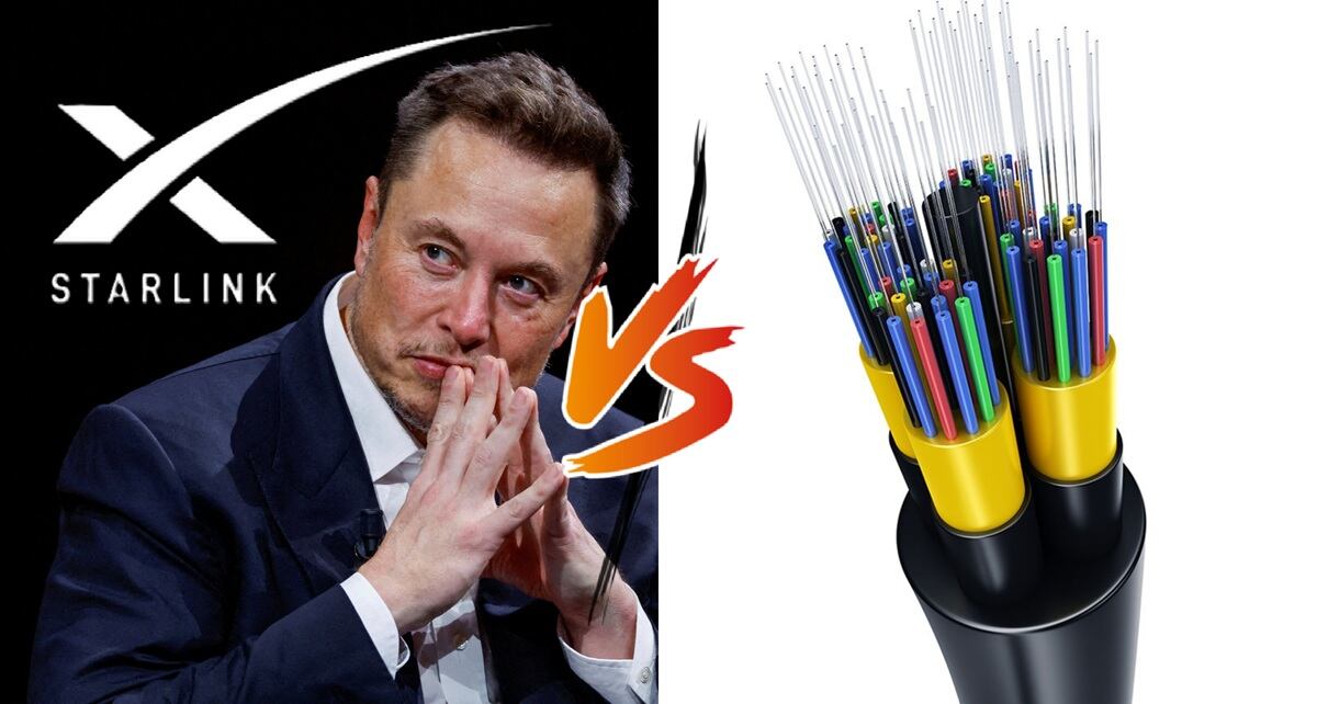 A Internet por cabo de fibra óptica atinge e às vezes excede 1.000 Mbps (1 Gbs) de velocidade. É muito superior aos 50-250 Mbps (0,050 - 0,250) em que o Starlink de Elon Musk se move.
