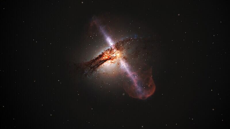 É a primeira vez que há uma inclinação diferente entre o buraco negro e a galáxia: é como se estivessem de lado, explicam especialistas na área.