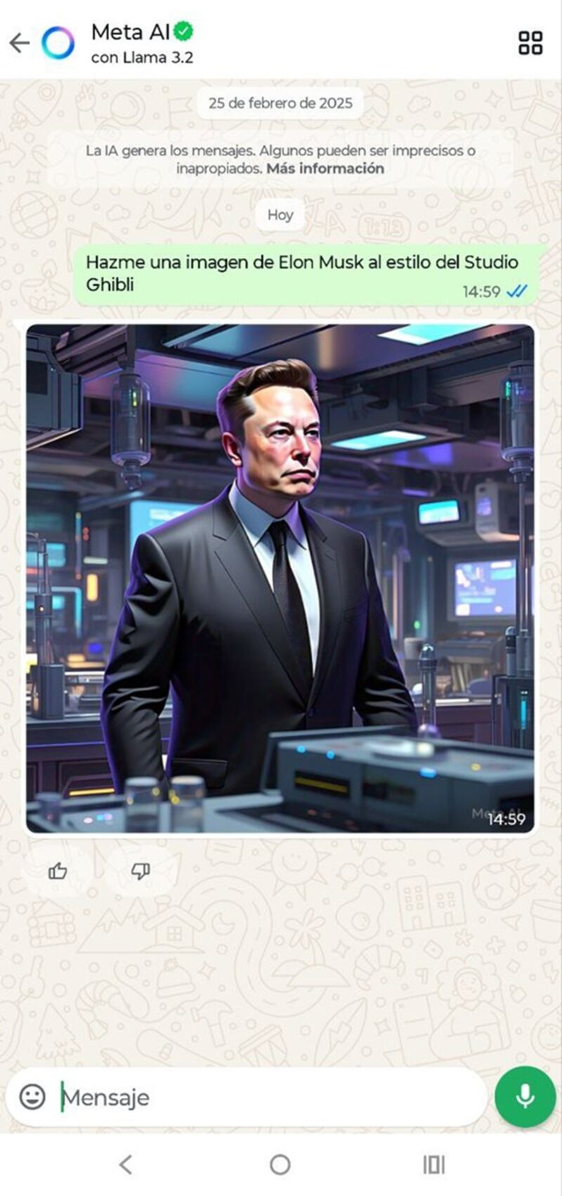 No entanto, esse não é um recurso exclusivo do ChatGPT. A inteligência artificial do WhatsApp, MetaAI, também pode gerar imagens do estilo solicitado pelo usuário. Damos-lhe o passo a passo, que é tão simples como perguntar à IA da OpenAI, só que o resultado normalmente não é o mesmo.