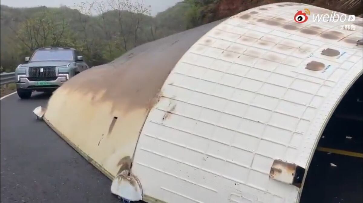 Um vídeo curioso viralizou nas redes sociais nesta terça-feira, 15 de abril de 2025. Uma enorme placa de ferro, que parece pertencer a um foguete gigante, obstrui a passagem de veículos em uma estrada rural na China.
