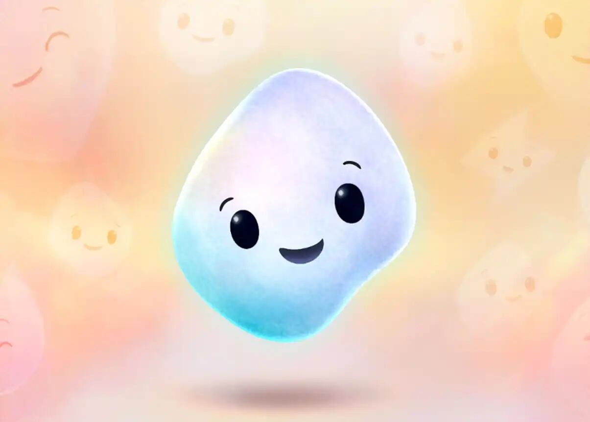 O resultado é uma figura abstrata e antropomórfica em forma de lágrima que sorri, acena, se concentra ou pisca, dependendo do que o usuário diz ou pergunta.