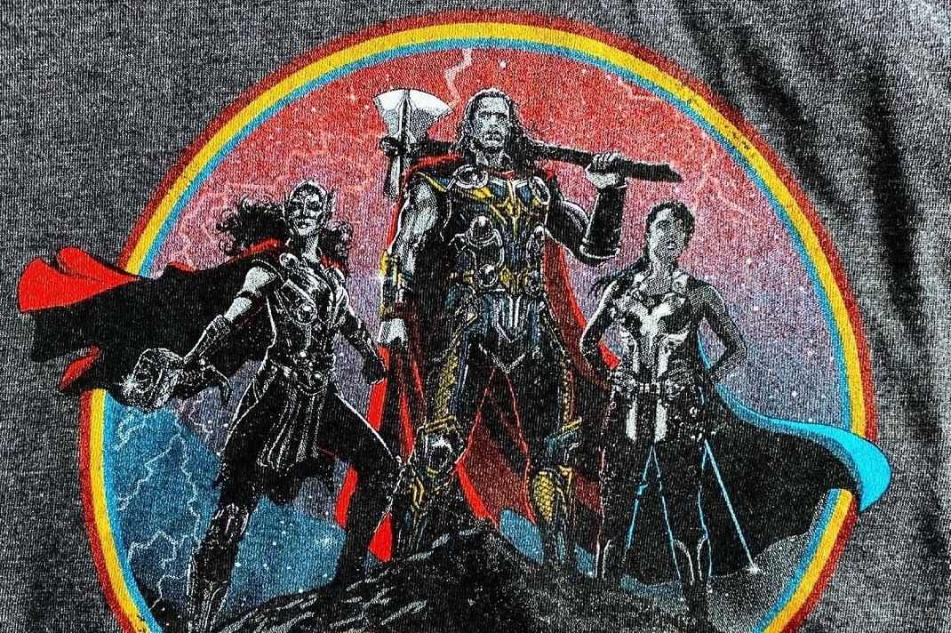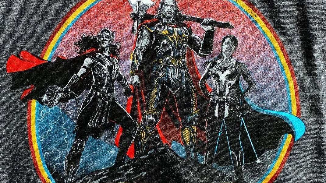 Uma foto das camisetas distribuídas para a equipe que trabalhou nas filmagens do longa ‘Thor: Amor e Trovão’ vazo no Twitter e mostrou primeiro look dos super-heróis.
