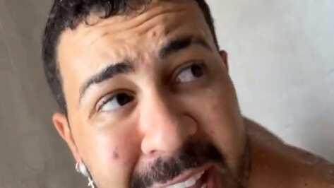 No vídeo, o humorista aparece tomando banho e fazendo uma crítica ao shampoo. A cena foi gravada pelo marido do humorista, Lucas Guimarães.