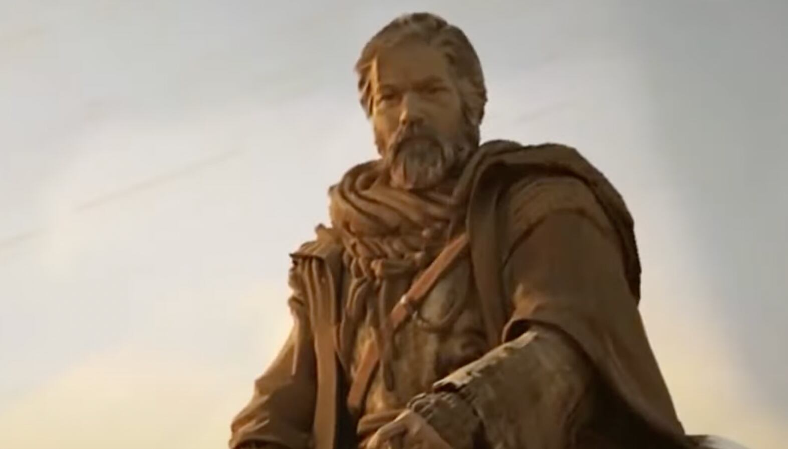 Na imagem, é possível ver Obi-Wan barbudo, com o sabre de força em uma das mãos, caminhando no mar de dunas de Tatooine. Como sabemos disso? Os dois sóis que estão atrás do personagem indicam que ele está neste planeta, a terra natal de Anakin Skywalker, que posteriormente se converteria no temido Darth Vader.