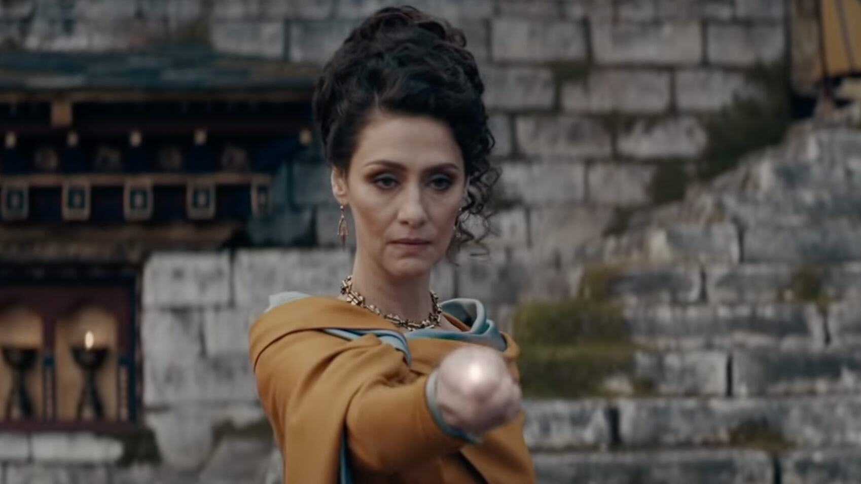 A atriz brasileira Maria Fernanda Cândido interpreta Vicência Santos, uma bruxa diretora da Escola de Magia da Bruxaria de Castelobruxo.