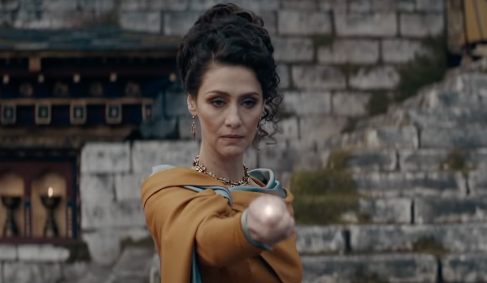 A atriz brasileira Maria Fernanda Cândido interpreta Vicência Santos, uma bruxa diretora da Escola de Magia da Bruxaria de Castelobruxo.