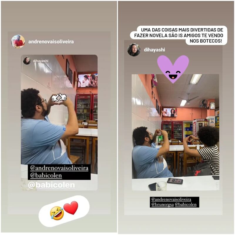 Na noite desta segunda-feira (14), a atriz Bárbara Colen reproduziu em seus stories no Instagram uma postagem de seus amigos dentro de um estabelecimento assistindo sua atuação na novela ‘Quanto Mais Vida, Melhor!’. Bárbara escreveu a seguinte frase: “Uma das coisas mais divertidas de fazer novela são os amigos te vendo nos botecos.”