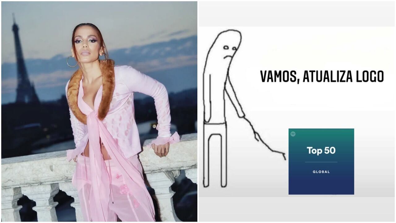 Nos dias anteriores, as atualizações da posição dos hits globais no Spotify aconteciam logo pela manhã e diversos fãs da cantora assumiram os resultados como um evento a ser celebrado. Toda vez que Anitta subia no no ranking, já era motivo para seu nome entrar nos tópicos mais comentados da internet. Contudo, o atraso da atualização de hoje rendeu bons memes.