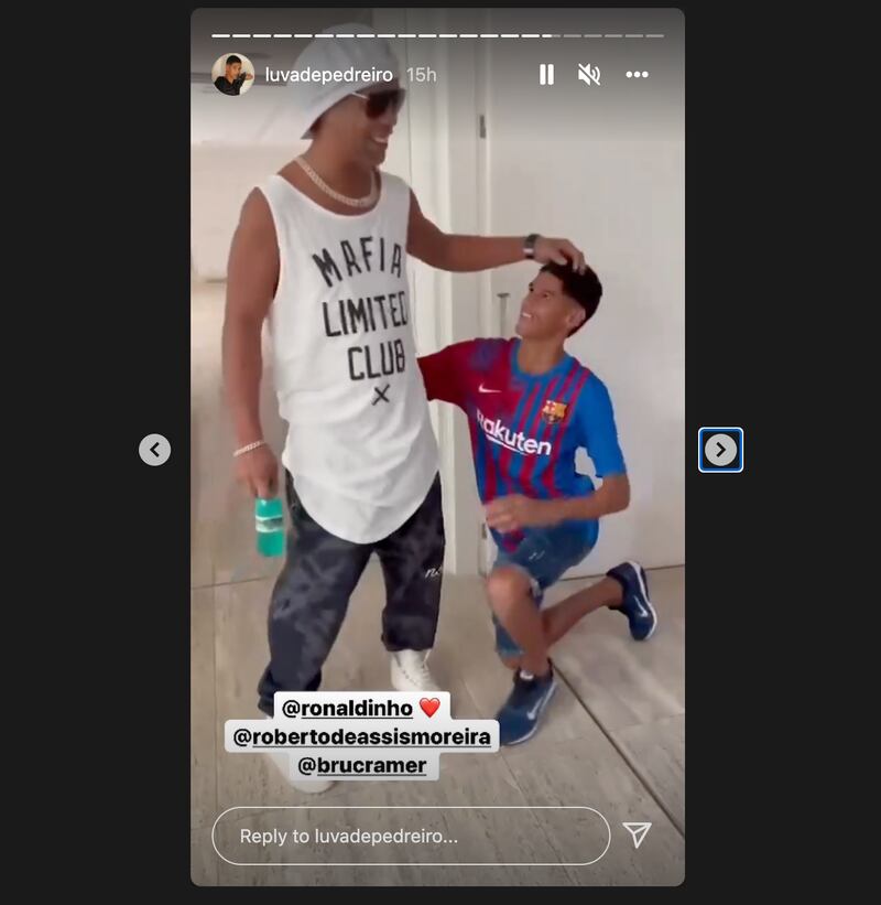 Um registro mostra a reação emocionante do influencer Luva de Pedreiro ao se encontrar com o ex-jogador Ronaldinho Gaúcho.
