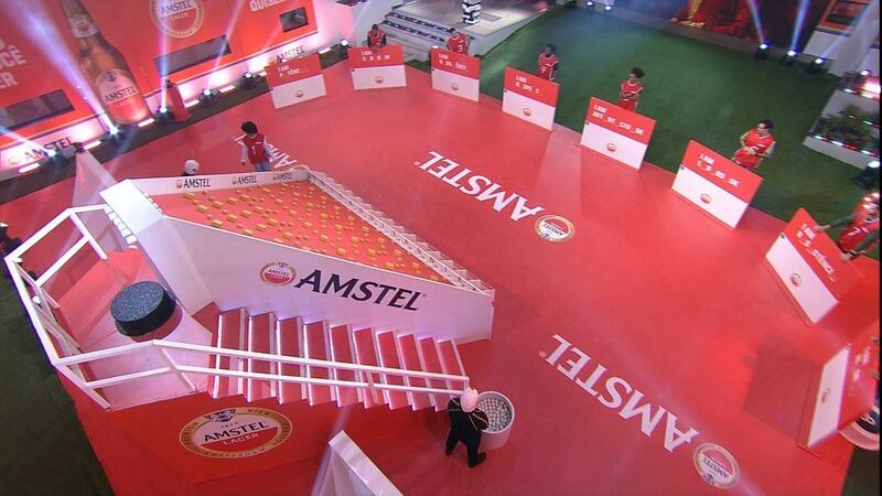“Nessa prova, o objetivo é completar a sua palavra com as vogais que estão faltando. Na sua vez, você sobe a escada, e lança duas bolinhas. Toda vez que a bolinha cair em uma vogal que falta para a sua palavra, você pega a letra e encaixa no seu painel. Se tivermos um empate, faremos mais uma letra para cada jogador que tiver empatado, já com a palavra completa”, explicou Tadeu.