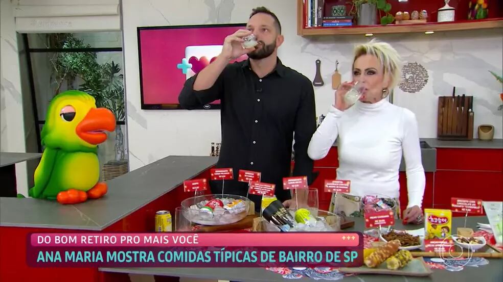 Ana Maria Braga surpreendeu o público ao provar uma bebida coreana sabor banana no “Mais Você”, da TV Globo, desta sexta-feira (6). O que chamou a atenção é o fato do produto conter álcool e ser consumido pela apresentadora durante a manhã. Na web, os internautas se divertiram: “Sextou”.