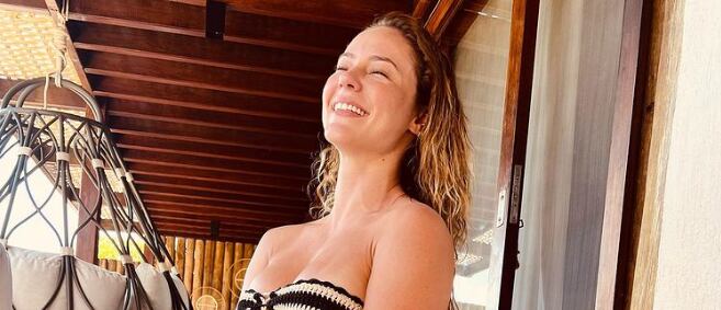 Na foto, Paolla aparece posando com um biquíni de crochê preto e branco. Ela também segura uma bebida em uma taça. Os fãs, como sempre, se derreteram em elogios.