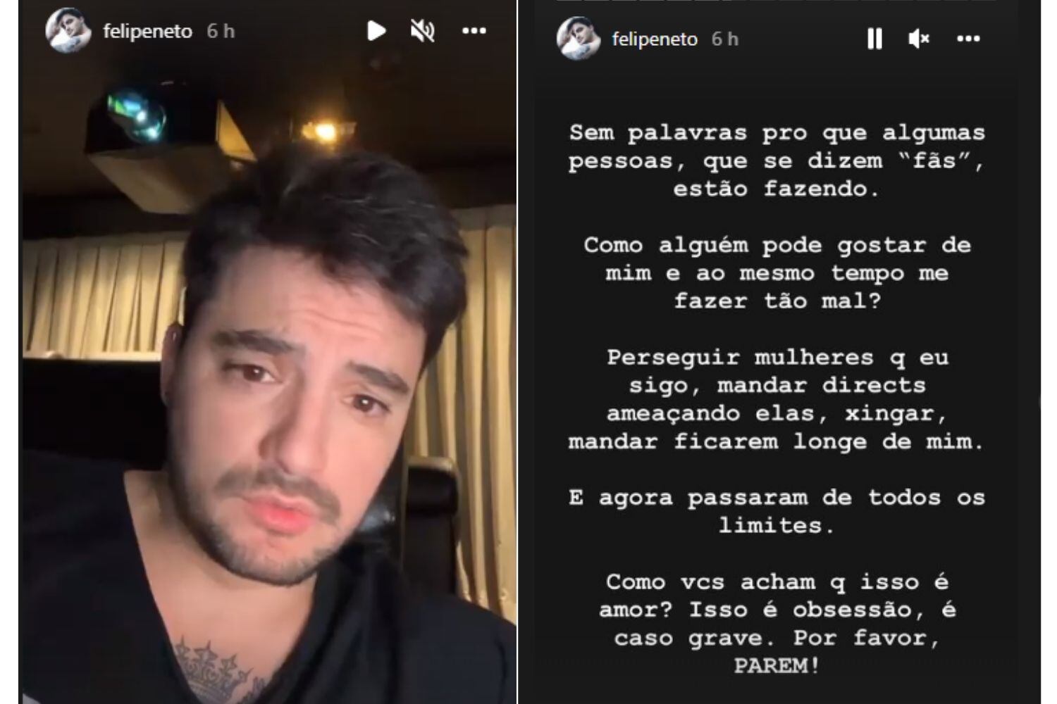 “Sem palavras pro que algumas pessoas, que se dizem ‘fãs’, estão fazendo. Como alguém pode gostar de mim e ao mesmo tempo me fazer tão mal? Perseguir mulheres que eu sigo, mandar directs ameaçando elas, xingar, mandar ficarem longe de mim. E agora passaram de todos os limites. Como vocês acham q isso é amor? Isso é obsessão, é caso grave. Por favor, PAREM!”, escreveu ele.