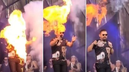 A assessoria do cantor confirmou o incidente, mas ressaltou que ele “sofreu queimadura leve, foi atendido no local, medicado e passa bem. Tanto que o show não foi interrompido, mantendo sua duração prevista.”