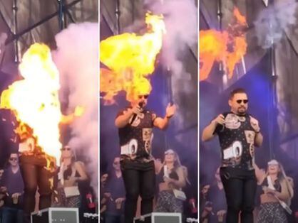 A assessoria do cantor confirmou o incidente, mas ressaltou que ele “sofreu queimadura leve, foi atendido no local, medicado e passa bem. Tanto que o show não foi interrompido, mantendo sua duração prevista.”