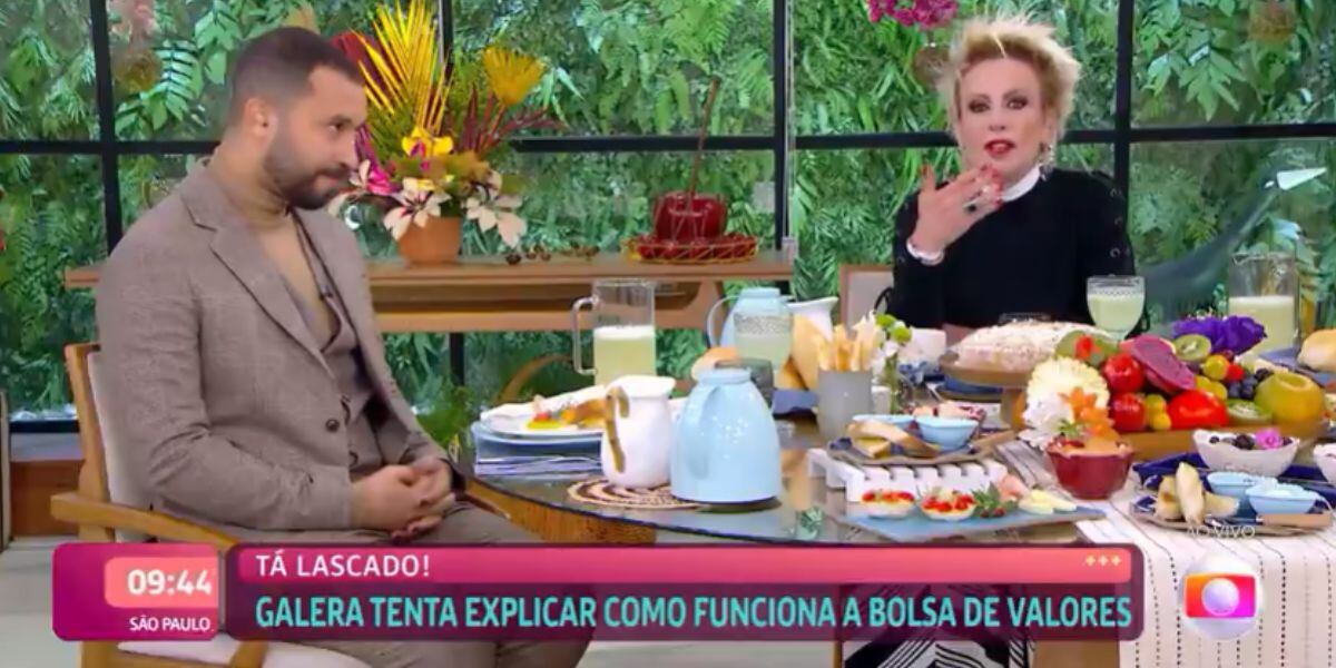 Ana Maria Braga trouxe um assunto complexo ao “Mais Você” na manhã desta quinta-feira (9). Ao lado do ex-BBB Gil do Vigor, ela falou sobre bolsa de valores no quadro “Tá Lascado”,