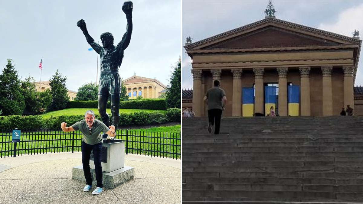 “Quando a gente estava junto da estátua do Rocky, na Filadélfia, minha mulher falou assim pra mim: ‘Duvido que você suba correndo a escadaria do Museu da Filadélfia, que nem o Rocky fez no filme, e lá em cima ainda comemore com pulinhos. Duvido!’”, disse o jornalista.