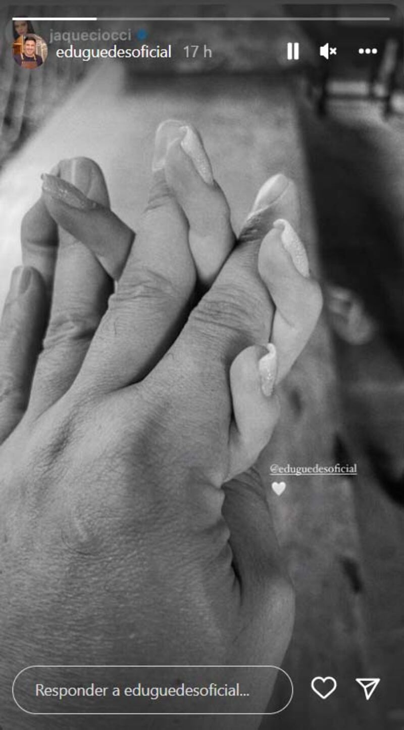 O chef de cozinha Edu Guedes está namorando a bailarina e repórter Jaque Ciocci, que trabalha no programa “Faustão na Band”. No sábado (18), ele compartilhou uma foto de mãos dada com a amada e, no dia seguinte, foi ela quem compartilhou um clique dos dois de rostos colados durante uma viagem romântica (veja abaixo).