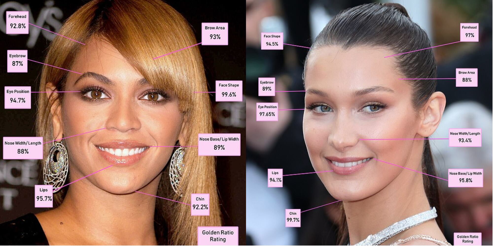 O ‘Golden Ratio’ ou Proporção Áurea é uma medida de perfeição física de artistas e arquitetos usados durante o Renascentismo europeu, como objetivo de mapear suas obras-primas. Foi usado um padrão estabelecido pelos gregos para estudar a aparência das famosas.