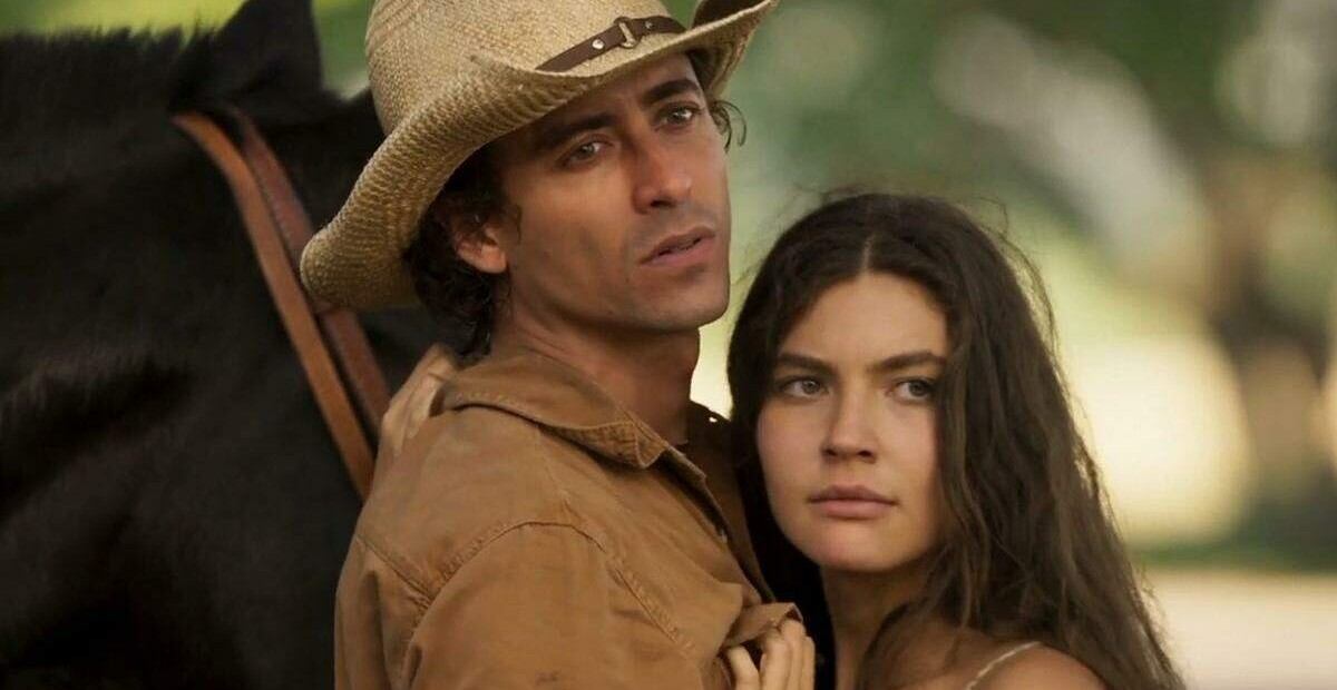 O casamento de Juma (Alanis Guillen) e Jove (Jesuíta Barbosa) é uma das principais cenas da novela “Pantanal”, que atualmente ganhou uma versão e está sendo exibida no horário nobre da Globo.