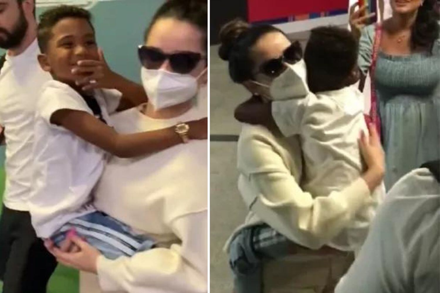 Em outro vídeo, é possível ver que o menino fazia o sinal de “não” para a mãe, enquanto seguia abraçando a ex-BBB. Na sequência, Nicolas voltou para os braços maternos.