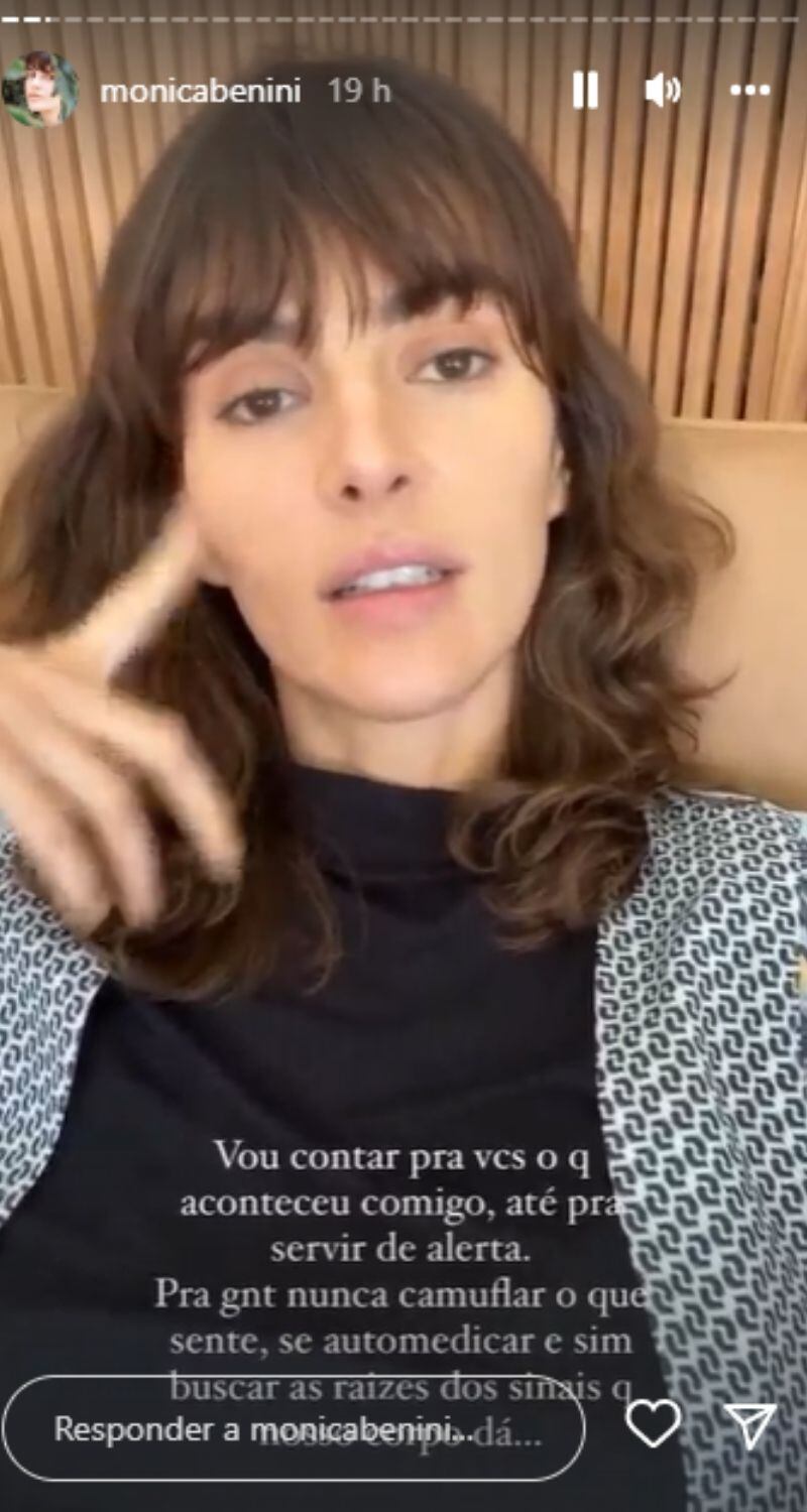 “Vou contar para vocês o que aconteceu comigo, até para servir de alerta, para a gente nunca camuflar as dores que a gente sente, sempre checar. Não se automedicar, tentando melhorar o que está sentindo sem saber”, começou Mônica, nos stories do Instagram.