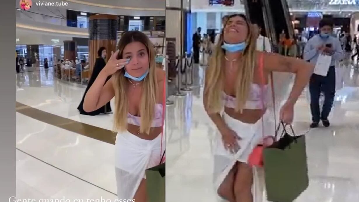 Ao sair da loja da Gucci, dentro do shopping, a influencer estava com sacola em mãos enquanto gravava um vídeo prometendo mostrar as aquisições. Contudo, foi chamada por um segurança após apitar ao passar pela porta.
