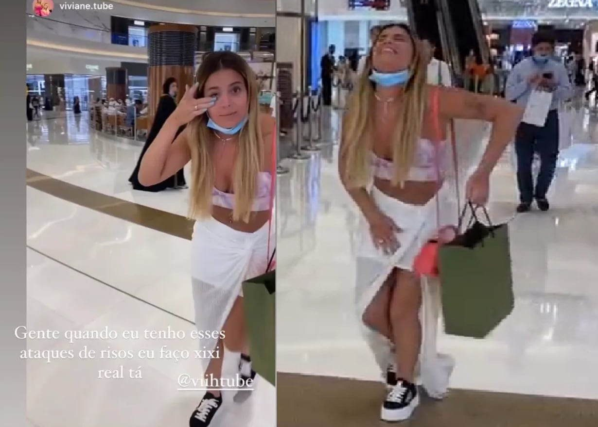 Presente no maior shopping center do mundo, Viih Tube tirou onda no solo de Dubai nesta quarta-feira (27) e deu o que falar em suas redes sociais. Em momento cômico durante viagem em família, sua mãe, Viviane, acabou revelando que a influenciadora digital fez xixi na calça depois de uma crise de riso.