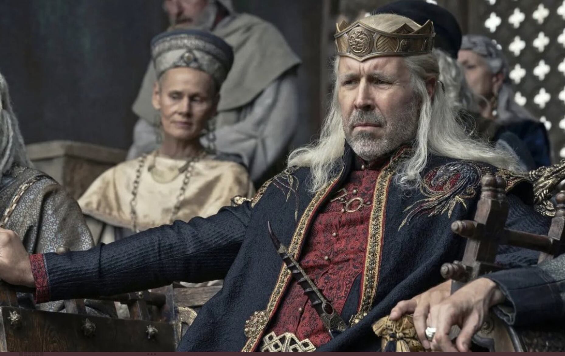 O monarca queria que seu filho Rhaenyra, o único sobrevivente de seu primeiro casamento, sucedesse ao Mas, após sua morte, sua segunda esposa Alicent reivindica o trono para seu filho mais velho, Aegon.