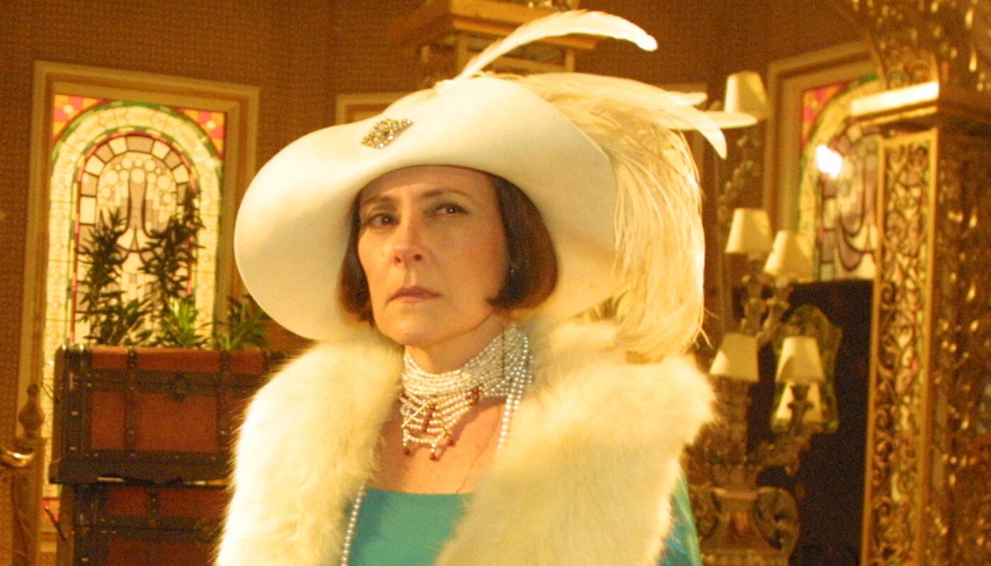 Em “Chocolate com Pimenta”, Elizabeth Savala é a intérprete da divertidíssima vilã Jezebel, que é irmã de Ludovico (Ary Fontoura) e presidente da fábrica de chocolates da cidade fictícia de Ventura. Mas, o futuro não será nada feliz para ela.