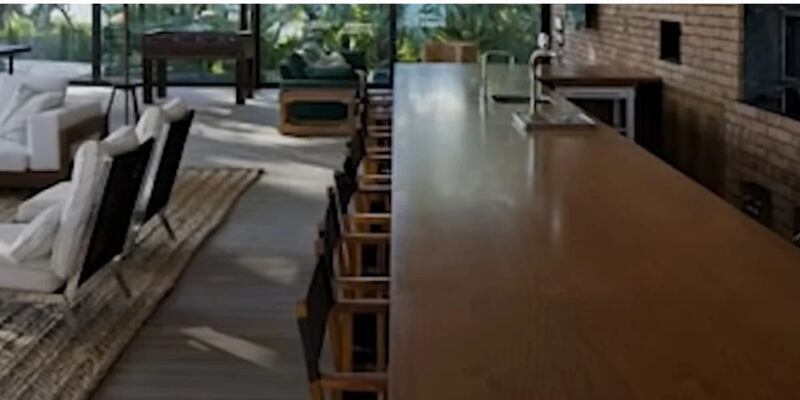 “Entrei na sala, assim, tinha um helicóptero estacionado, em cima da churrasqueira. Grande. Um jardim incrível, o carrinho de golfe andando no meio da floresta. Tem uma floresta dentro da casa”, disse Cario em relação à casa dos apresentadores.