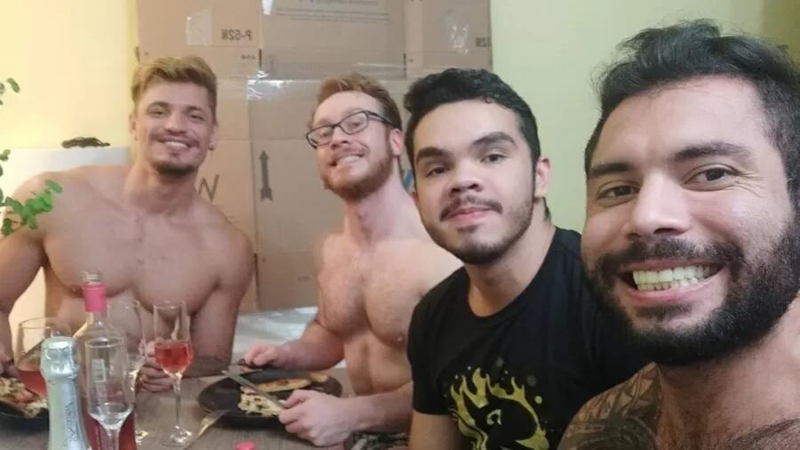 Na época, Léo compartilhou um registro dos quatro juntos comemorando a aquisição de um novo apartamento. Em conversa com a Universa, eles contaram ter decidido buscar a casa própria após o aumento da família, mais a chegada de Sérgio, pois antes eram um trisal. “Quatro homens, três cachorros e três gatos, nosso apartamento antigo começou a ficar pequeno”, disse Léo no período.