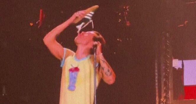 Vale lembrar que o cantor estava calçado na hora em que tomou a bebida. Ou seja, o tênis tinha sido separado especialmente para servir de copo no palco.