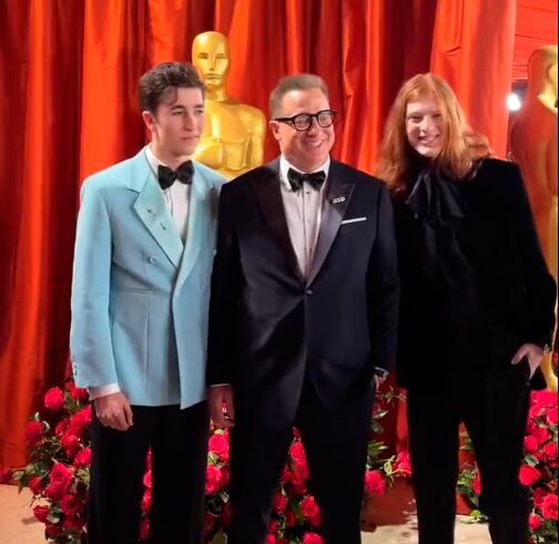 Leland e Holden Fraser brilharam com o pai no tapete vermelho e estiveram ao seu lado em todos os momentos. Quando o ator ganhou o prêmio, seus filhos se emocionaram e o abraçaram ao mesmo tempo.