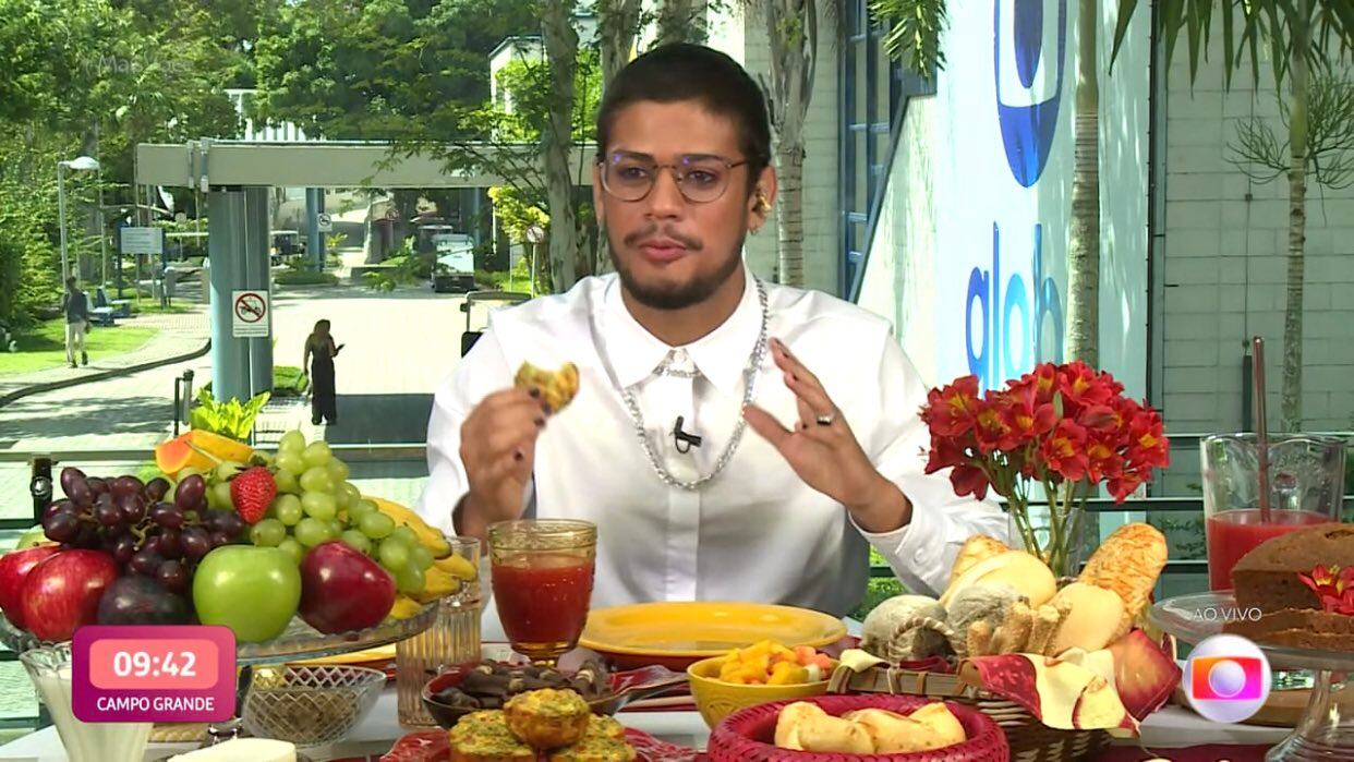 Sem a presença de Ana Maria Braga, o artista foi entrevistado pelos jornalistas Fabrício Battaglini e Thalita Morete para o quadro “Café com Eliminado”.