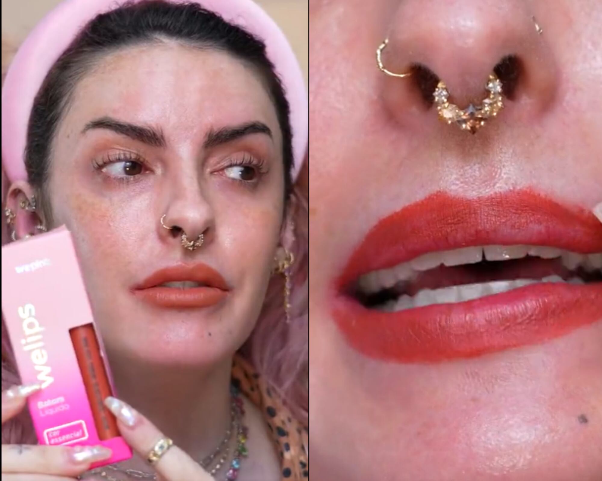 No vídeo em que testa o batom, a maquiadora e influenciadora analisou a consistência do produto, além de ter testado três vezes para garantir a sua melhor eficiência: “Bem grudentinho. Achei a cor bonita. Estou esperando secar. Salienta bastante as linhas finas, por ser muito liquído”, disse.