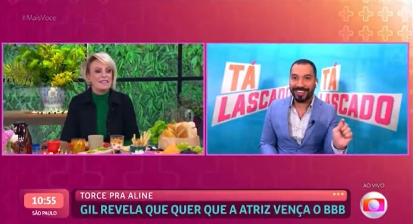 Para completar, Gil ainda prometeu à Ana Maria Braga que entraria na casa do BBB23. “Eu vou entrar na casa, vou dar um pulinho lá dentro. Vou filmar tudo. Vou tomar banho na piscina de sunguinha, entendeu? E vou fazer um vídeo e enviar pra tu, Ana”.