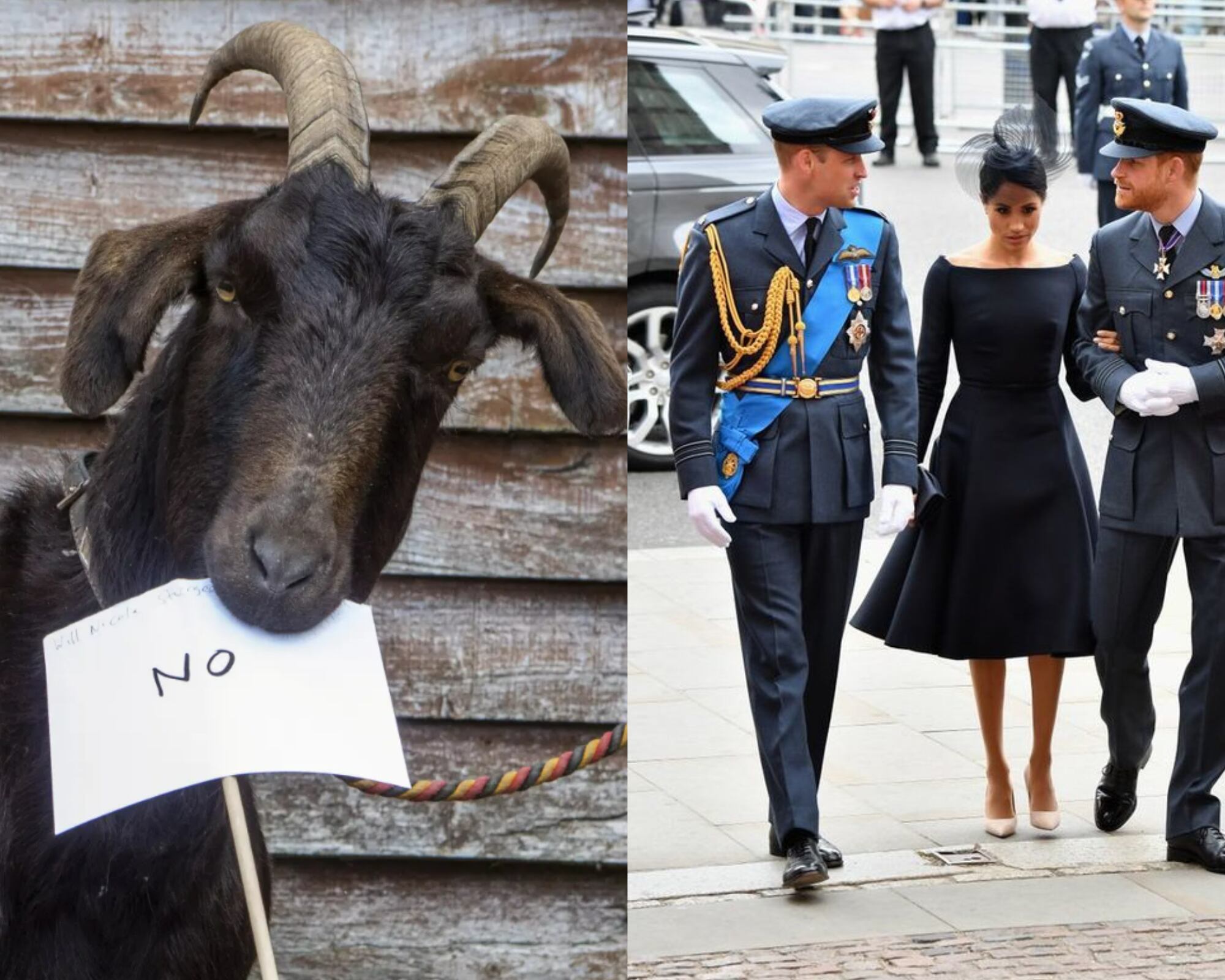 O Southwest News Service iniciou perguntando se os príncipes William e Harry estabeleceriam “uma trégua” em sua rivalidade por conta da coroação do seu pai. Então, eles apresentaram à cabra cartões de “sim” e “não”, antes de Billy hesitar por “alguns minutos” e finalmente escolher “não”.
