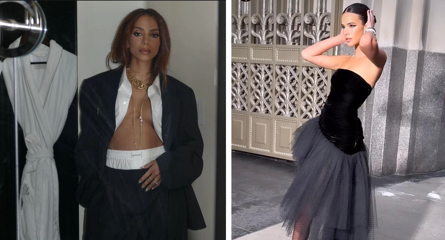 Anitta e Bruna Marquezine apareceram juntas em evento de reinauguração de uma joalheria de luxo em Nova York na noite da última quinta-feira.