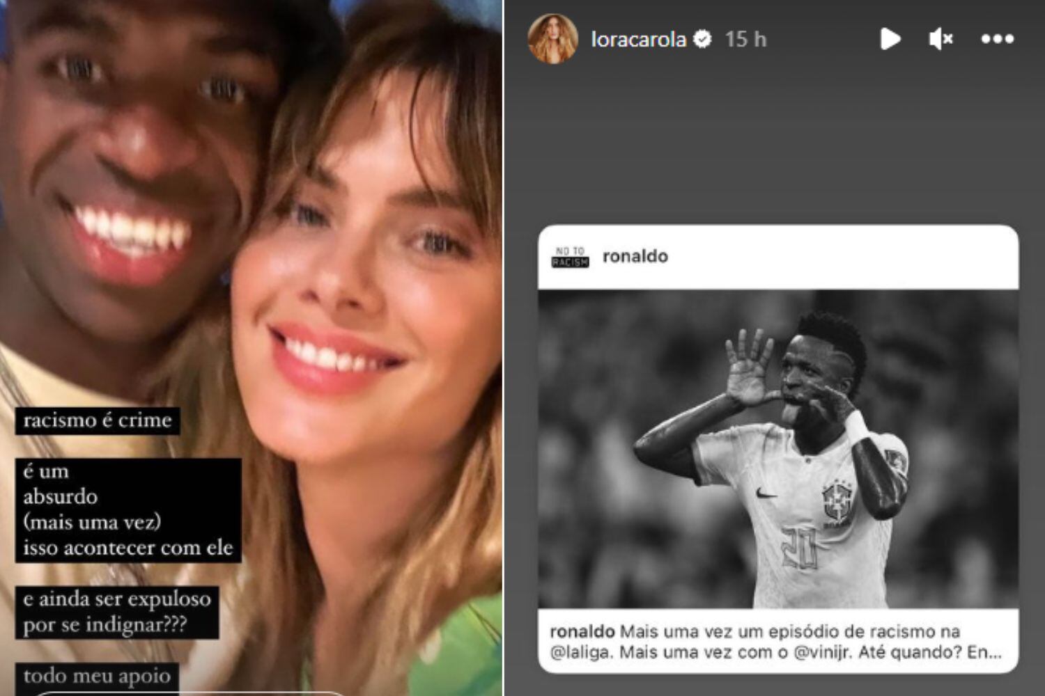 A atriz Carolina Dieckmann postou uma série de notícias nos stories do seu Instagram sobre o novo ataque racista sofrido pelo brasileiro Vini Jr., atacante do Real Madrid. Vários insultos foram feitos pela torcida do Valencia contra o atleta, durante partida no Estádio Mastalla, casa do adversário.