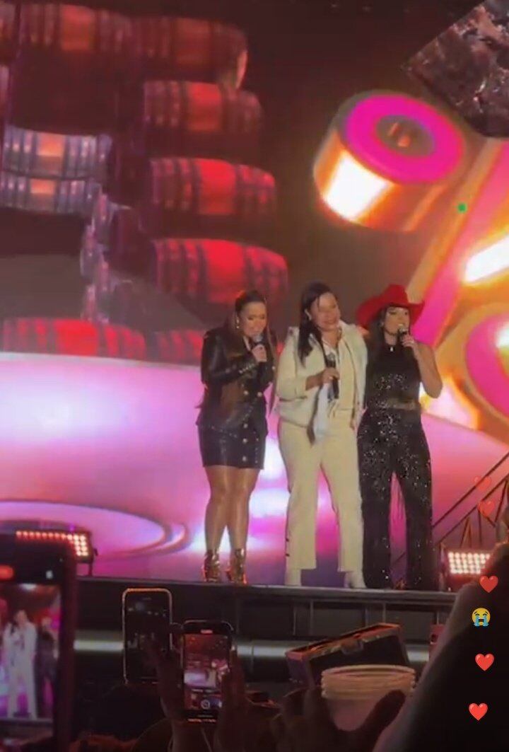 “Foi uma mistura de sentimento. O show tá lindo, eu tava com saudades delas... Eu senti saudade da Marília com elas. Eu tô muito emocionada em ver vocês cantando a voz da Marília, aqui dando forças pra elas, a casa cheia, isso me emocionou muito! Obrigada, gente, obrigada! Eu tô muito feliz”.