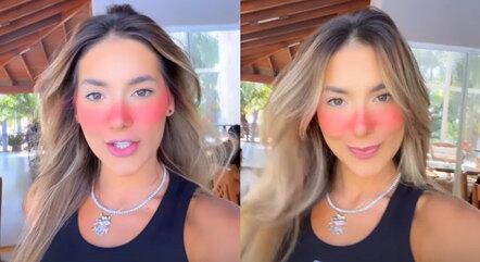 “Olha, gente. Até que não ficou tão ruim. Arrasou, Kamyla”, disse a esposa de Zé Felipe nos stories de seu Instagram. “Olha, gente, nossa, que maravilha”, continuou falando, ironicamente, acrescentando na legenda: “Tem blush até no cabelo”.
