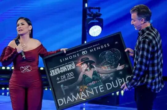 Conforme publicado pelo Estadão, Simone recebeu a homenagem das mãos do apresentador durante sua participação no ‘Domingão com Huck’.