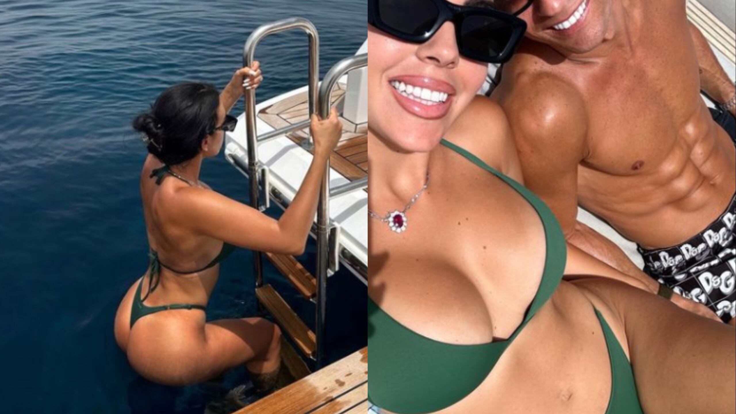 Georgina Rodríguez chamou a atenção de seus quase 50 milhões de seguidores, nesta sexta-feira (23), ao posar de biquíni durante passeio de barco. Em um dos registros, a modelo de 29 anos de idade surgiu ao lado do parceiro, o craque Cristiano Ronaldo, de 38 anos.