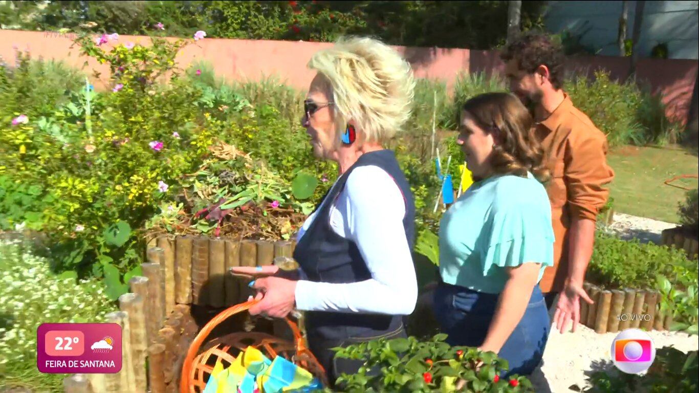 Os três continuaram andando pela horta de Ana Maria Braga mostrando outros legumes e hortaliças presentes no local, mas o mistério da abobrinha gigante não foi desvendado.