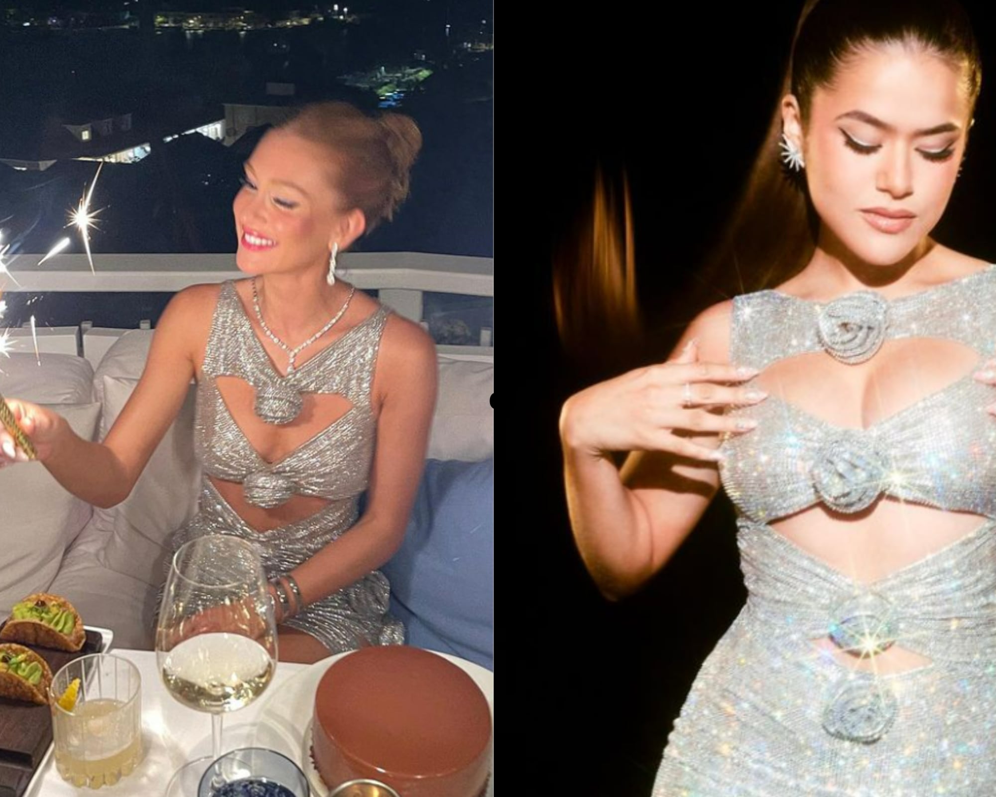 Mas, um mês depois, foi a vez da atriz global utilizar esse look deslumbrante para celebrar os seus 28. O look é da grife Giuseppe Di Morabito e tem detalhes em cristais, além de recortes nas laterais e na parte frontal, e Marina combinou com joias da Bulgari, marca que é embaixadora. A comemoração foi nada menos do que em uma ilha no meio do Caribe, em São Bartolomeu.