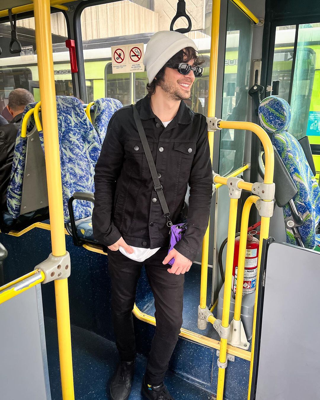 Todo de preto, o ator escreveu na legenda: “Sextou no busão. Qual a próxima parada? IMAGINELAND. Bom dia, família”. Segundo o gshow, o registro aconteceu em um transporte público rodoviário.
